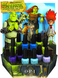Jatketaan elokuvayhteistöillä ja Shrek kokoelmalla. Olisin voinut taputtaa OPI-ihmisiä päälaelle äidillisesti, koska kerrankin saatiin kokoelma, jossa ei ole niitä tylsiä punaisia ja pinkkejä. Shrekit oli pakko saada ja näiden kohdalla taisin ensimmäistä kertaa saada swatchattua kaikki lakat melkein heti kun tilaus tuli perille. Olivat siis kaikki mieleisiä.